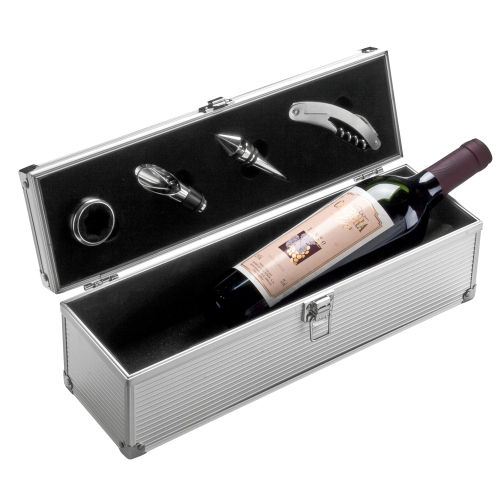 Schöne Aluminium Weinbox für das moderne Büro oder die moderne Wohnung. Eine edle Verpackung für ein edles Tröpfchen.