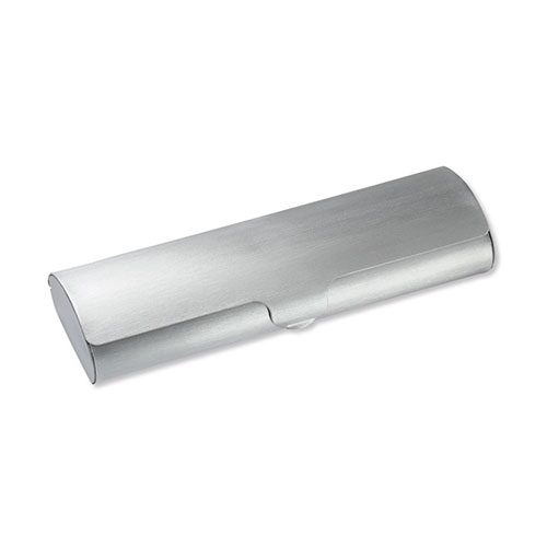Ein dezentes Aluminium-Etui in gebürsteter Optik. Das schwarze Innenfutter bildet einen schönen Kontrast zu den matt silberen Oberflächen dieses schlanken Etuis. Ein elegantes und zeitloses Design.