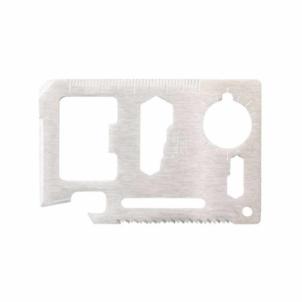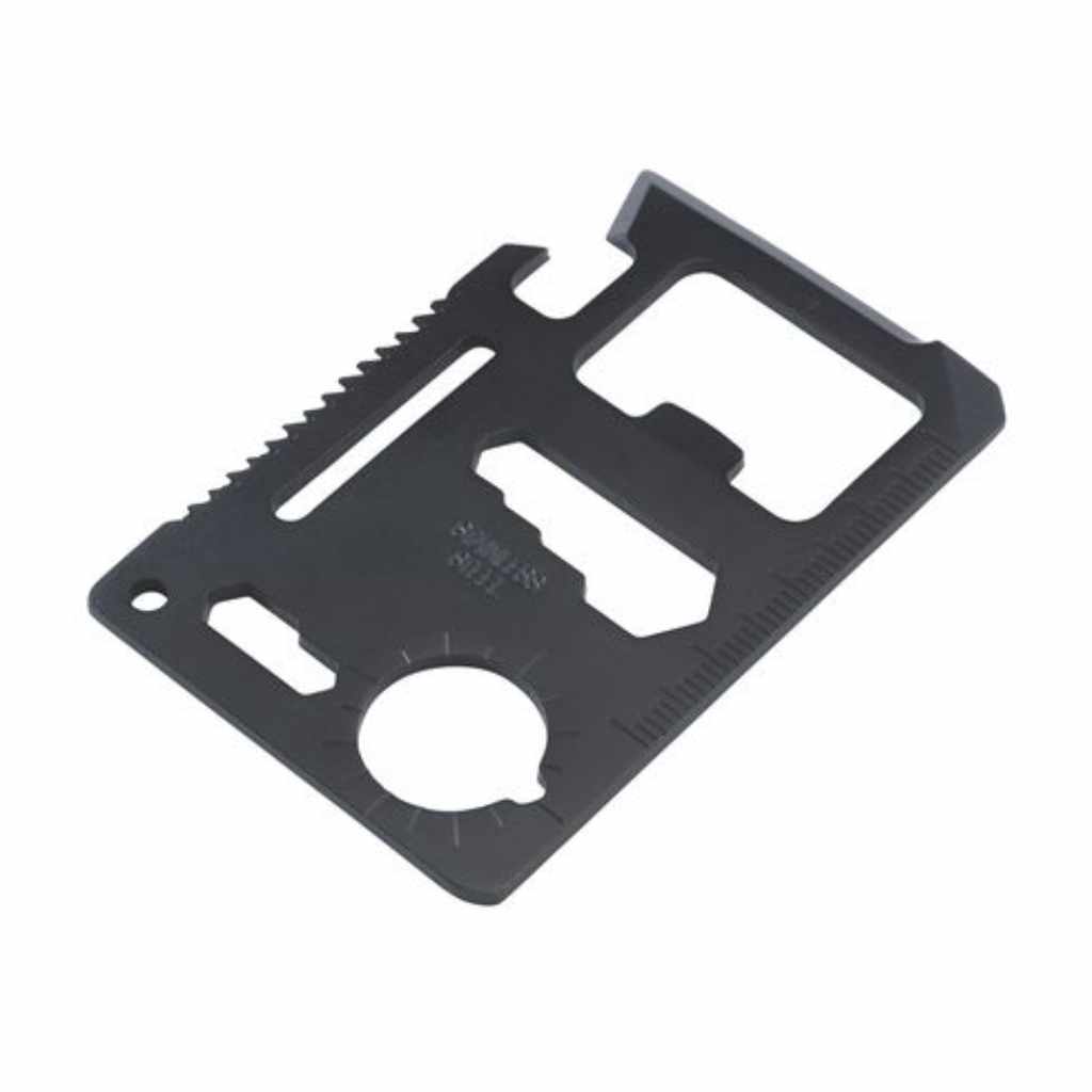 Dieses hochwertige und kleine Tool bietet so ziemlich alles, was man braucht. Zu den 11 Funktionen gehören ein Dosenöffner, ein Schraubenzieher, ein Lineal, ein Schraubenschlüssel, eine kleine Säge, ein Winkelmesser, ein Schlüsselanhänger und noch vieles mehr. Das alles in der Größe einer Kreditkarte nimmt so gut wie keinen Platz weg und lässt sich dank einer Lederimitat-Hülle sehr einfach überall hin mittransportieren. Mit individuellem Logo angebracht ein ideales Geschenk für Outdoor-Fans aber auch für Daheimgebliebene. Das praktische Alltagshelfer ist in blau, schwarz und silber erhältlich.