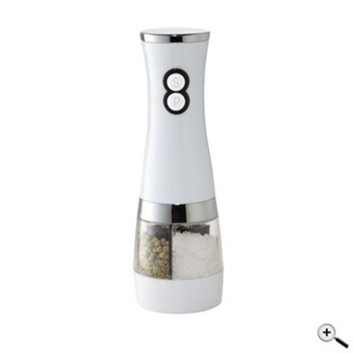 Die elektrische Gewürzmühle aus Kunststoff hat ein Sichtfenster zum Überprüfen des Füllstandes. Das hochwertige Keramikmahlwerk liefert per Knopfdruck Salz oder Pfeffer. Die Salz- und Pfeffermühle kommt im Etui zu Ihnen, die Batterien (6 x AA) sind nicht inklusive. Ihre Werbebotschaft wird im unteren Teil der weissen Mühle angebracht.