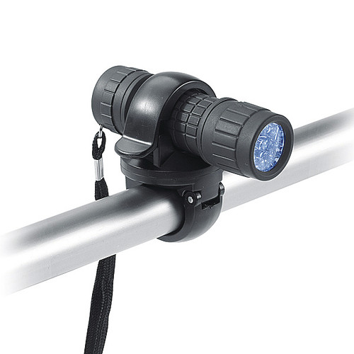 Richtig robust ist diese spritzwassergeschützte LED-Leuchte fürs Fahrrad. Auf dem gummierten Gehäuse wird Ihre Werbung im Tampondruck angebracht. Die Fahrrad-Lampe hat 9 starken weiße LEDs, die passende Halterung sowie die Batterie sind in der Geschenkbox mit enthalten.