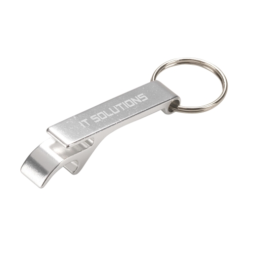 Dieser praktische Schlüsselanhänger tut genau das, was ein Schlüsselanhänger tun soll. Der Anhänger aus Aluminium ist in verschiedenen Farben erhältlich und passt somit zu jedem Schlüsselbund. Um noch etwas Besonderes mit einzubringen ist nicht nur ein einfacher Flaschenöffner integriert, sondern es lassen sich auch Dosen ganz einfach damit öffnen. Mit individuellem Logo also ein praktisches Geschenk, das jedem einen Nutzen bringt.