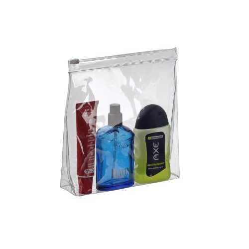 Der transparente Beutel mit Schiebeverschluß ideal für zum Fliegen. (ohne Inhhalt).