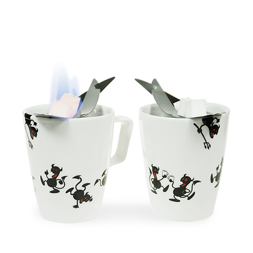 Die zwei hitzebeständigen Tassen aus feinem Porzellan mit dem witzigen Druck lassen die Bowle noch besser schmecken. Die schlitzverschränkten Edelstahlzangen halten den mit Alkohol getränkten Zuckerwürfel, bis er von der Flamme geschmolzen, Tropfen für Tropfen zum Aroma der beliebten Feuerzangenbowle beiträgt. Ein Geschenk mit dem Sie Ihren Kunden und Geschäftspartnern mit Sicherheit einige gemütliche Abende bereiten. Geliefert wird das Set in einem ansprechendem Geschenkarton, eine Individualisierung der Zangen, sowie der Verpackung ist möglich.
