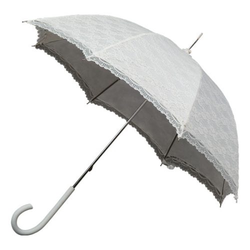 Ein romantischer Damen-Stockschirm retro, mit einen Außenbezug aus Spitze, falls es bei der Hochzeit regnet ist dieser Schirm das passende Accessoire.