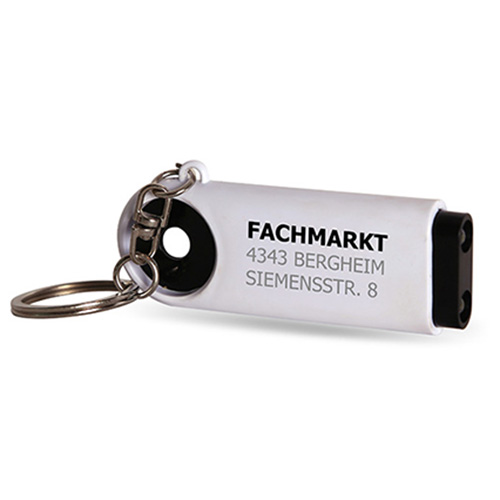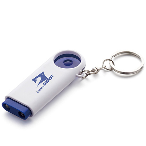 Der Schlüsselanhänger mit LED und Einkaufswagenchip ist ein kleines Give-away für Ihre Kunden mit großem Nutzen. Mit dem Schlüsselanhänger mit Einkaufswagenchip ist man zu Shoppen bestens gerüstet und dank der 2 starken weißen LEDs stehen Ihre Kunden nicht im Dunkeln. Werbewirksam stark wird der Schlüsselanhänger durch Ihr Logo im Tampon- oder Digitaldruck. Verfügbar in 4 Farben.