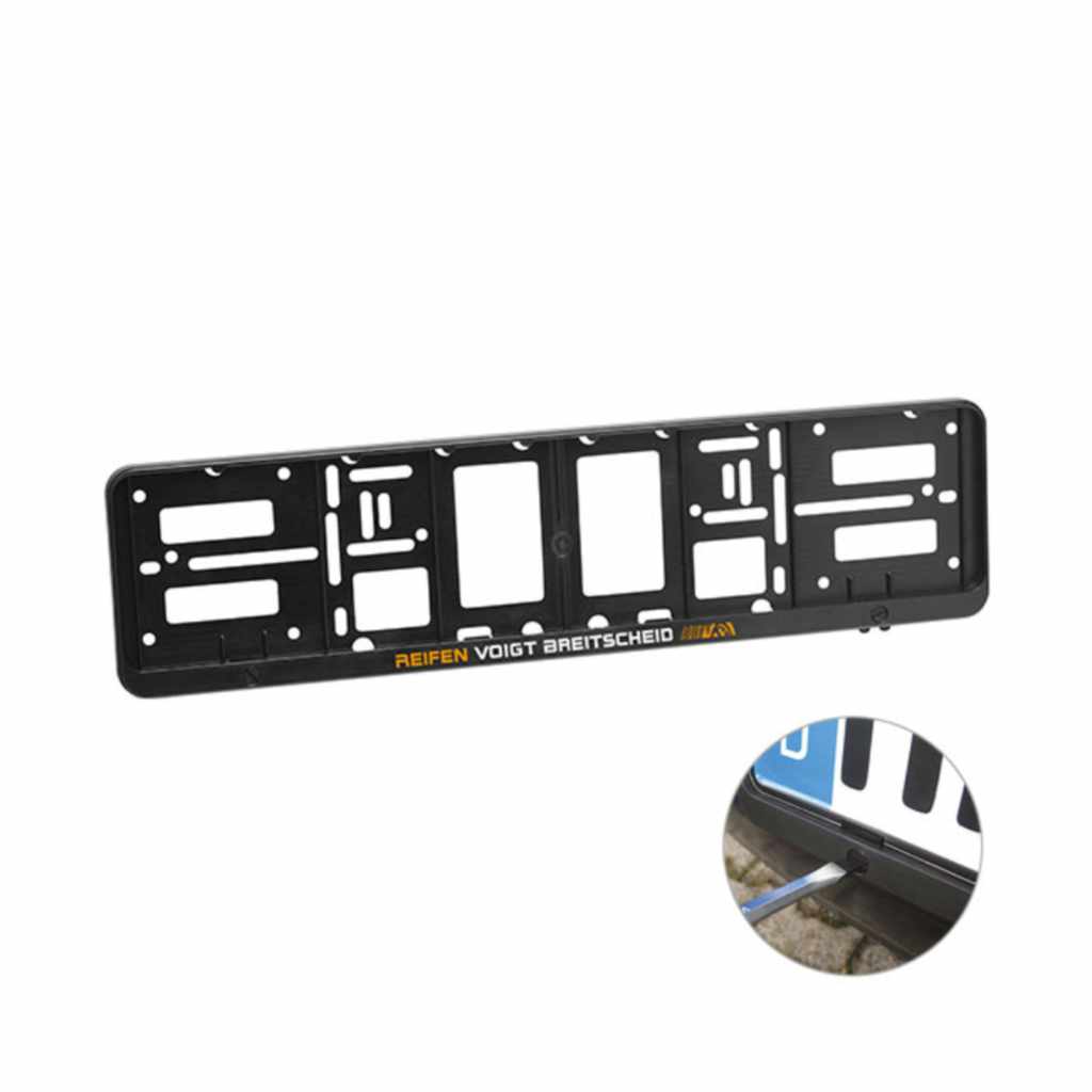 Endlich ist er da, der Super Fahrzeug Nummernschildverstärker mit dem drehbaren Schloss und Montageplatten. Einfach Nummernschild einlegen (alle gängigen Kennzeichen mit dem Maß 520 x 110 mm passen rein) und mit Schraubenzieher einfach zuschließen. Schnelle Vormontage des Nummernschildverstärkers am Fahrzeug, dann nur Nummernschild einschließen – einfacher geht es nicht. Keine Bohrung durch das Kennzeichen nötig und einfaches Auswechseln möglich. Dieser Artikel ist Made in Germany.