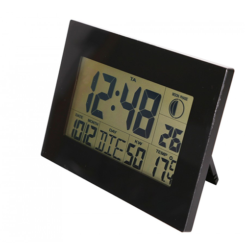 Eine stylische Uhr mit der Sie die Zeit und Temperatur immer im Blick behalten. Verschlafen war gestern! Der Wecker stellt in jedem Raum, sei es Büro oder Wohnung, einen schönen Akzent dar. Er besitzt eine 12/24 Stunden Anzeige mit Weck- und Schlummerfunktion, Datums- und Wochentagsanzeige in sieben Sprachen, sowie eine Mondphasen und Innentemperaturanzeige mit beleuchtetem Hintergrund. In zwei Farben erhältlich.